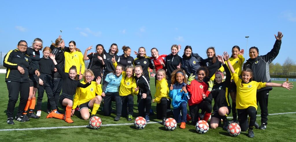 Al ruim voor aanvangstijd dribbelden de eerste deelnemers de trappen op richting de kantine aan de Lotte Beesedijk nr 1. Na een korte introductie en uitleg van het programma van de dag eindelijk het veld op, waar 5 trainers klaar stonden om te werken aan de techniek van ruim 20 meiden in de leeftijd van 10 t/m 15 jaar. Het enthousiasme spatte werkelijk van het veld!