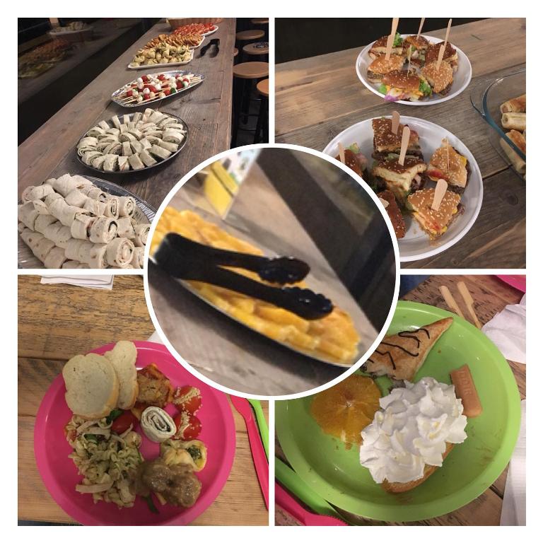 Na het lasertaggen gingen we door naar Reiger Boys waar de kantine beschikbaar was om gezamenlijk te eten (Aad en Paula, onwijs bedankt hiervoor!). Iedereen was gevraagd om iets mee te nemen zodat we met zijn allen konden genieten van allerlei verschillende hapjes. Het beste gerecht maakte ook dit jaar weer kans op de wisselbokaal: “de gouden koekenpan”.