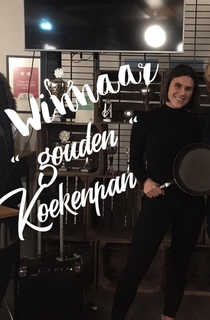 De avond werd afgesloten met de uitreiking van de verschillende prijzen. Team C mocht een prijs in ontvangst nemen voor de meest creatieve antwoorden, Jana Spieker ging er dit jaar vandoor met de Gouden Koekenpan. Al met al was het een zeer geslaagde dag. Iedereen heel erg bedankt voor jullie inzet en enthousiasme!