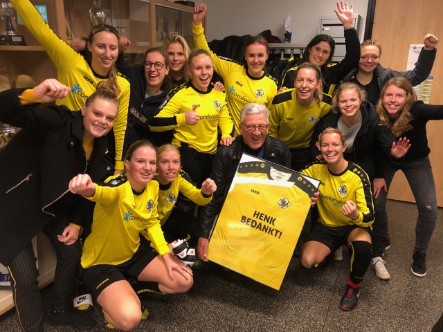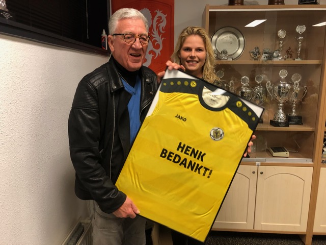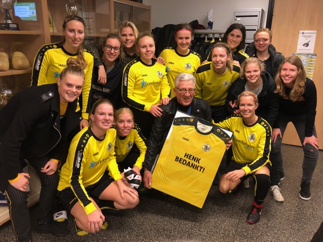 De vrouwenselectie heeft afgelopen zaterdag na de wedstrijd tegen RCL afscheid genomen van Henk Lassing. Namens de vrouwenselectie overhandige Dominique een ingelijst wedstrijdshirt met daarop de tekst HENK BEDANKT!