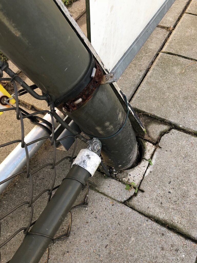 Vrijdagavond zijn de wedstrijden van 7 tegen 7 stil gelegd vanwege het slechte weer wat in aankomst was. Net toen iedereen veilig op de tribune, in de kleedkamer of de kantine was barste het los. Paar flinke onweersklappen, zware regenval en hele harde wind. Zelfs een zeer lokale windhoos ging over een deel van het complex. Hierdoor is er flinke schade ontstaan aan een ballenvanger van het hoofdveld. Vanmorgen vroeg is de schade opgenomen en zijn een aantal maatregelen getroffen zodat wedstrijden veilig kon worden gespeeld. Op de bijgevoegde foto’s is goed te zien wat de krachten kunnen veroorzaken tijdens dit soort weersomstandigheden. Op internet circuleren video’s waar te zien is hoe deze windhoos aan komt zetten, in kracht toeneemt boven het water en dan over de Wending raast.