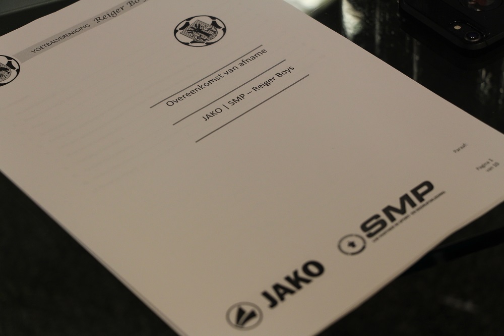 Zaterdagmiddag 7 maart tijden de rust van de wedstrijd Reiger Boys Heren 1 tegen EVC Heren 1 werd het nieuwe kledingcontract ondertekend. Deze nieuwe overeenkomst tussen SMP / JAKO en Reiger Boys loopt vanaf het komende seizoen voor drie jaar met de mogelijkheid van verlenging van weer drie jaar.