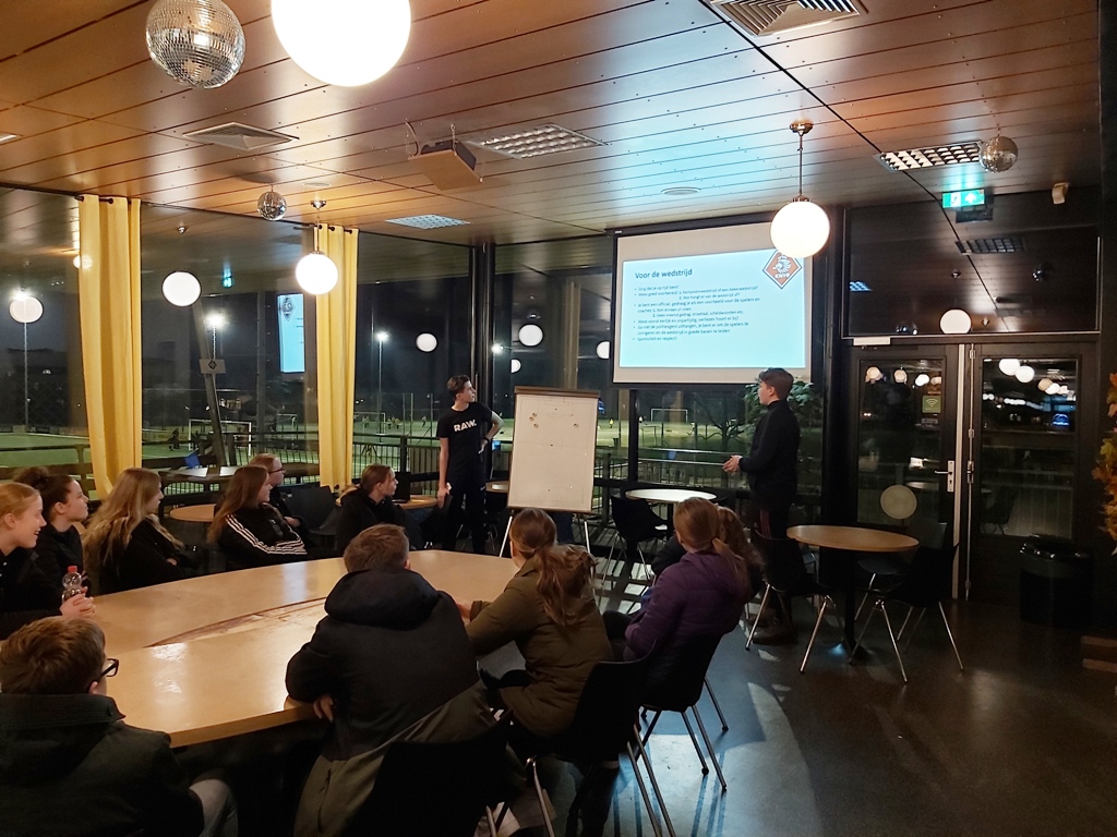 Afgelopen donderdag was de scheidsrechterstraining voor de spelers en speelsters O17 – O19. Grote waardering gaat uit naar Valentijn Bakker en Brian van Alphen die aangeboden hadden om deze training te geven.