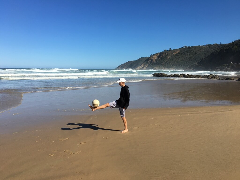 De eerste vakantiefoto’s van dit jaar zijn binnen. Kai (JO13-2) is op bezoek bij zijn opa en oma in het dorp Wilderness aan de zuidkust van Zuid-Afrika. Hij is hieralvast begonnen met trainen zoals te zien is.