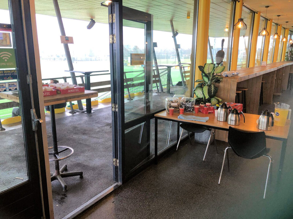 Vanmorgen konden de trainers na of tijdens de training een kopje koffie met een koekje halen op het bordes. Iets wat zeer gewaardeerd werd want het was behoorlijk koud. Uiteraard werden de jeugdleden niet vergeten. Zij konden een glaasje limonade ophalen.