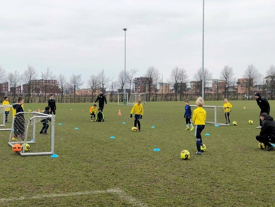 Afgelopen zondag is de eerste dag van de Reiger Boys voetbalschool van start gegaan. Met de enthousiaste en energieke deelnemers zijn de trainers Kay, Sten en Brian hard bezig geweest om er een mooie en leerzame eerste dag van de maken. De training was vooral gericht op balcontrole en snelheid in combinatie met het beoefenen van de technische vaardigheden zowel met als zonder bal.