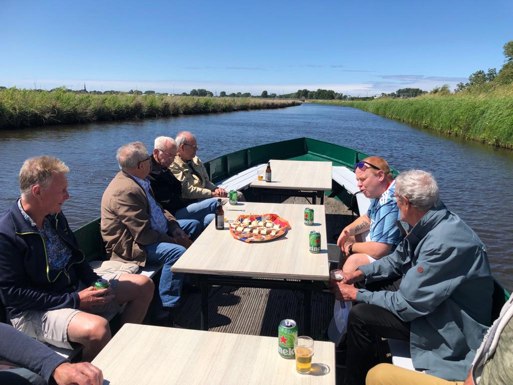 Onder voortreffelijke omstandigheden met prachtig weer hebben de MOT medewerkers afgelopen woensdag onder het genot van een hapje en drankje een boottocht gemaakt via de Kraak bootverhuur en het Poldermuseum. Deze 1,5 uur durende vaartocht ging via de Hoornse Vaart langs het Waagplein en verder door de binnenstad van Alkmaar. Na de boottocht hebben we nog even nagepraat op het terras bij het Poldermuseum over de boottocht. En nogmaals het weer werkte mee volop zon.