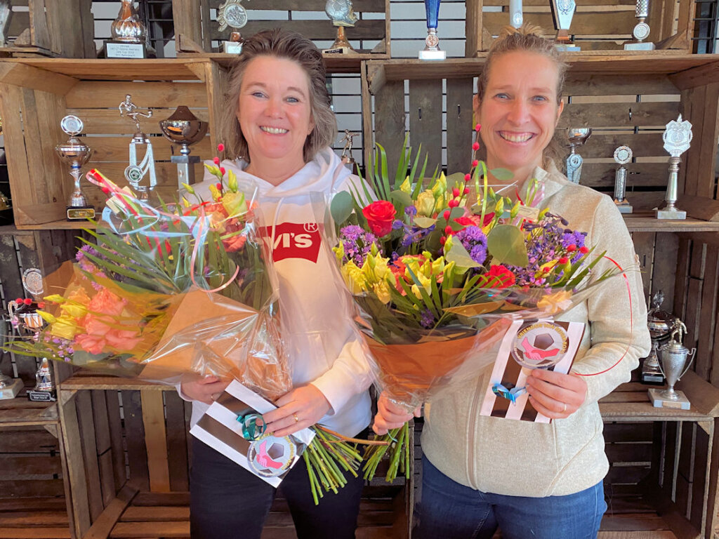 Afgelopen zaterdag werden Cindy de Ruijter en Karin Arxhoek bij Reiger Boys verrast en in het zonnetje gezet als vrijwilligers van de maand. Er zijn tientallen stemmen voor hen binnen gekomen en terecht. Cindy is jaren vrijwilliger bij Reiger Boys: eerst als coördinator van toernooien, vrijwilliger bij toernooien en activiteiten, coördinator van de meiden en Vrouwen en nu als teammanager bij de Vrouwen. Zij is vrijwilliger van de maand december 2021. Karin is vrijwilliger van de maand januari en ook al jaren actief bij Reiger Boys: eerst als coördinator bij de meiden, nu is ze actief als begeleider bij de MO 19-1, is vaak vrijwilliger bij toernooien en coördineert de aanvragen van de VOG’s voor de vereniging. Samen staan ze af en toe bij gelegenheden ook nog gezellig samen in de kantine.