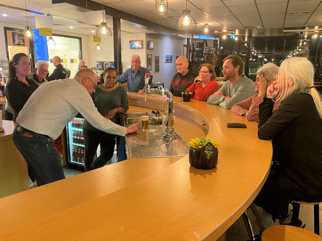 De groep heeft een rondje gemaakt door de keuken en zijn bijgepraat over de activiteiten die daar plaatsvinden. Ook hoe werken de nieuwe koffiemachine’s en hoe kun je het beste de pakken koffie, melk of chocolademelk wisselen. Daarnaast hoe handel je transacties af op de kassa’s en welke betaalvormen zijn er. Vervolgens mocht iedereen gaan proberen bier te tappen en konden dit gelijk in de praktijk brengen want langzamerhand liep de kantine vol met leden die klaar waren met de training.
