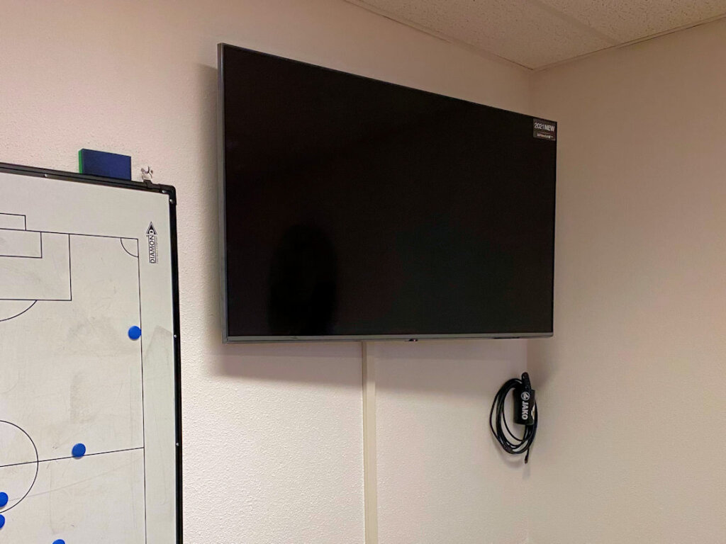 In de linker instructieruimte is ook een 55 inch scherm gemonteerd op een zwenkarm. Deze zal gebruikt worden bij wedstrijdbesprekingen, analyses, cursussen en trainingen. Dit op verzoek van verschillende trainers.