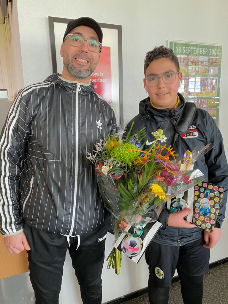 Afgelopen zaterdag zijn er weer 2 vrijwilligers in het zonnetje gezet. Voor de maand februari was dat Imran. Imran is al een paar jaar scheidsrechter voor Reiger Boys en doet dat met veel enthousiasme. Wij vinden hem met zijn jonge leeftijd echt een voorbeeld. Zijn vader Mostapha is al jaren vrijwilliger en is trainer geweest, maar vlagt en fluit ook als het nodig is. Zowel bij de jongens als bij de meiden. De vrijwilligers krijgen bloemen, een VVV bon van de Vrienden van Reiger Boys en 25 euro op hun clubcard gestort. Ook krijgen zij de foto’s die gemaakt zijn en een jaar lang in de koepel in de kantine hangen.