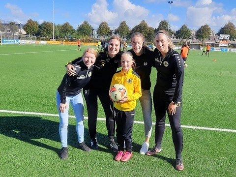 Na de westrijd mocht ik met mijn ouders en broer nog een keer naar de bestuurskamer toe. Daar werd ik verwend met een lekker drankje, patatje en een mooie voetbal met alle handtekeningen van de dames erop en lekkere snoep.
