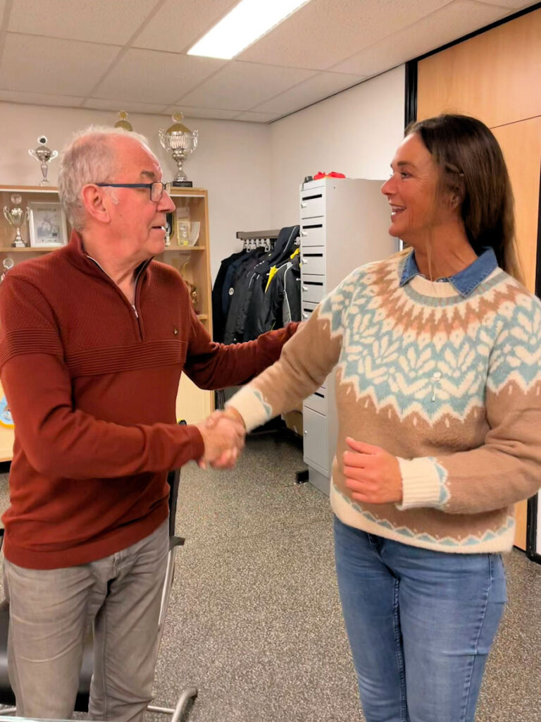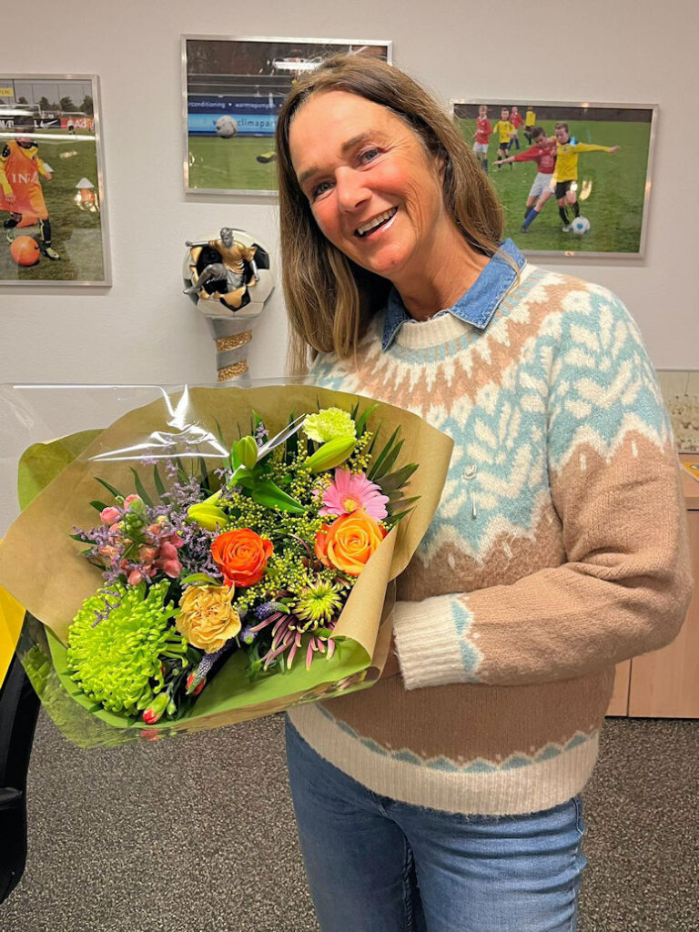 Zij is daarom gisteren in het zonnetje gezet met een mooi woordje van Wil, het zilveren Reiger Boys speldje en een mooie bos bloemen!