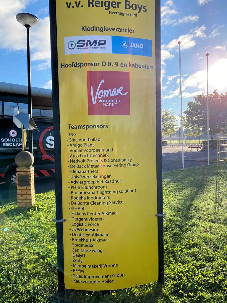 De sponsorzuilen bij de ingang van het complex zijn vanmorgen weer vervangen zodat al onze sponsoren voor het seizoen 2022/2023 er weer op staan. Op deze zuilen staan niet alleen de hoofdsponsoren, ster en subsponsoren maar ook alle teamsponsoren. Zoals we kunnen zien is dit een aardige lijst.