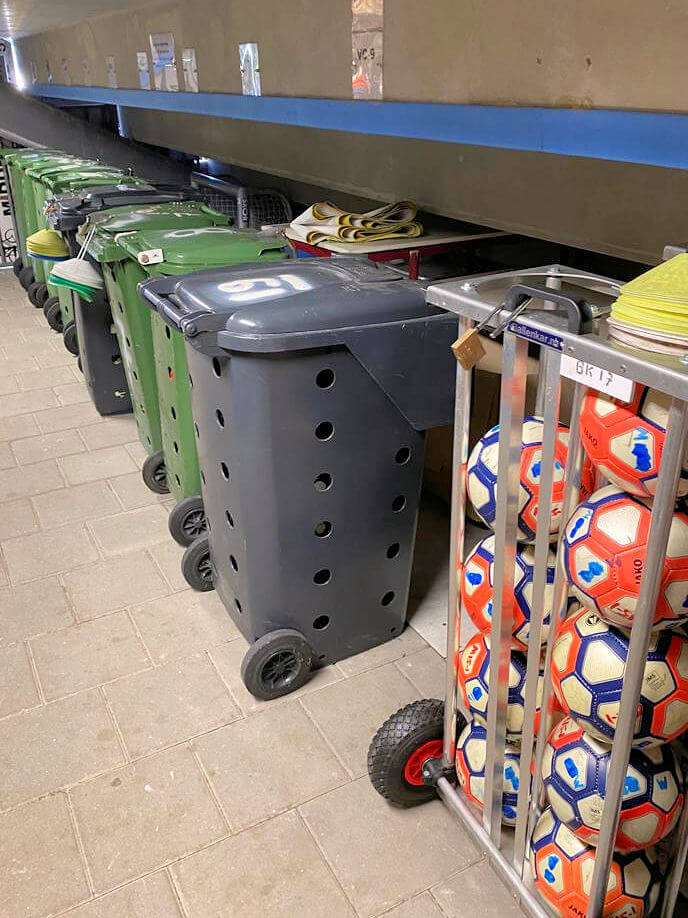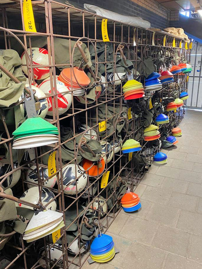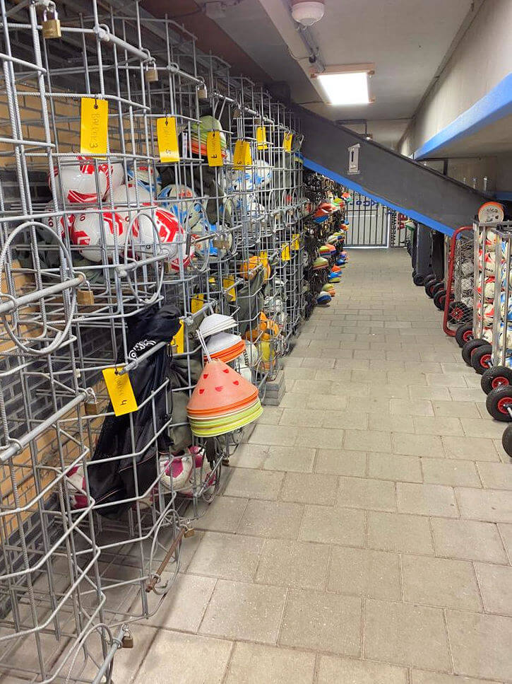 Deze foto’s zijn gemaakt onder de tribune waar de ballenracken en karren staan.