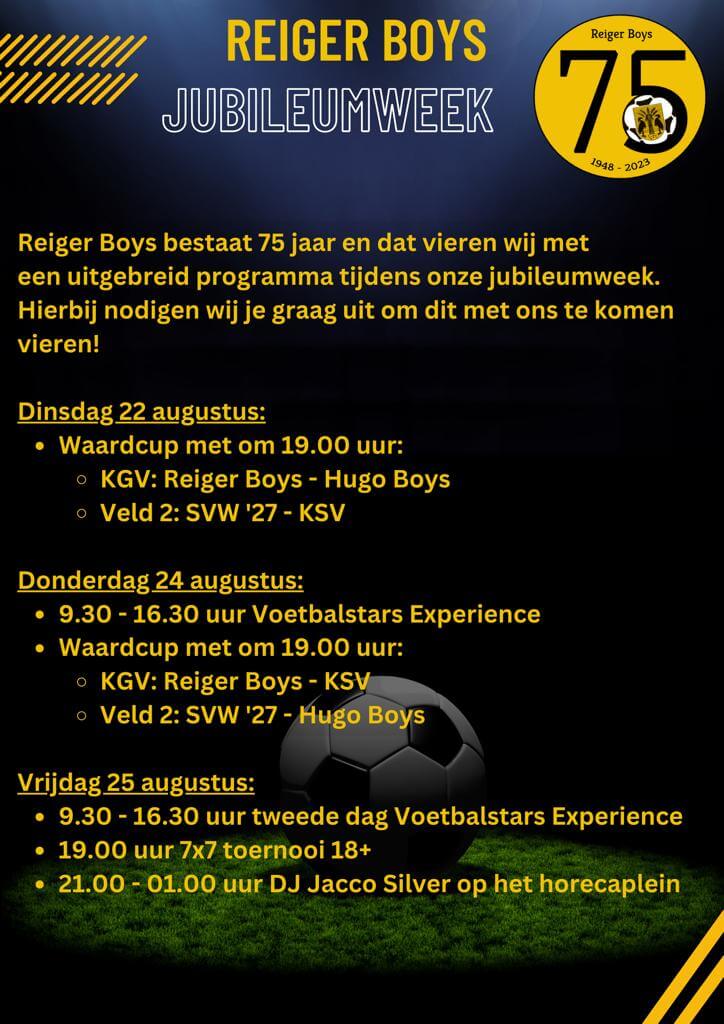 Het bestuur van Reiger Boys bedankt alle vrijwilligers, spelers en bezoekers die de jubileumweek van Reiger Boys en de Waard Cup afgelopen week hebben bezocht. Samen hebben we er met zijn allen een fantastische week van gemaakt en zijn iedereen dankbaar voor hun bijdrage in welke vorm dan ook! Kijk voor meer foto’s op onze FaceBook en Instagram…