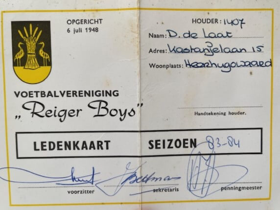 Van Dennis de Laat hebben we ook een aantal foto’s ontvangen. Ook een afbeelding van een Reiger Boys ledenkaart die er in het verleden was.