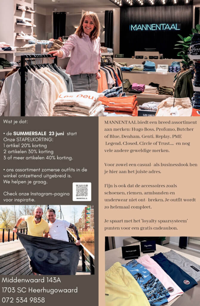 De afgelopen weken is al een advertentie van MANNENTAAL op de schermen van het complex te zien geweest en binnenkort ook langs het hoofdveld. MANNENTAAL is gevestigd in Middenwaard en heeft een breed assortiment aan herenkleding.