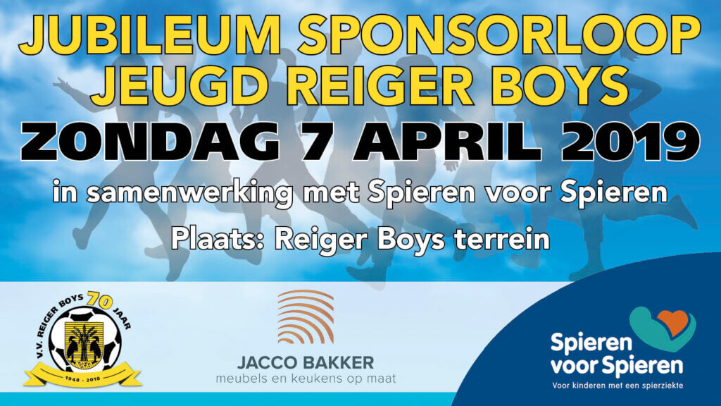 Eén van de activiteiten die in dit jubileumjaar (Reiger Boys 70 jaar) worden georganiseerd is een Sponsorloop voor alle jeugdleden. Deze zal worden gehouden op zondag 7 april 2019 op het complex van Reiger Boys. We hopen (en gaan er stilletjes vanuit) dat alle jeugdleden meedoen met de sponsorloop. Er is al veel voorbereid. Op…