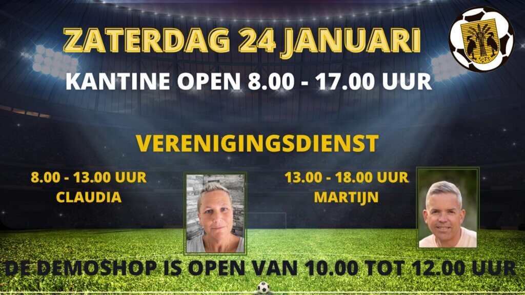 Kantine, verenigingsdienst en demoshop zaterdag 24 januari