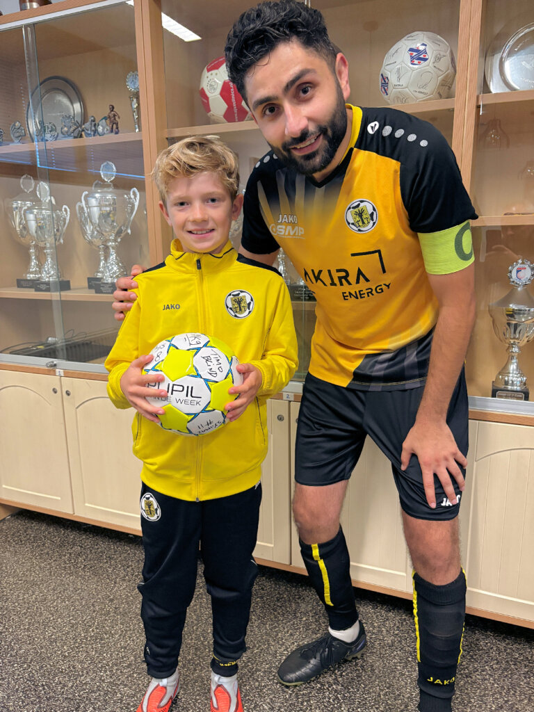 De wedstrijd tegen FC Castricum eindigde in een spannende 2-2. Na afloop kreeg ik een heerlijk patatje én een coole bal met alle handtekeningen van de spelers.