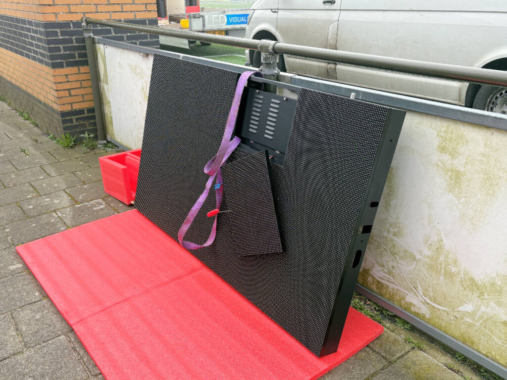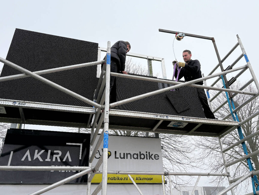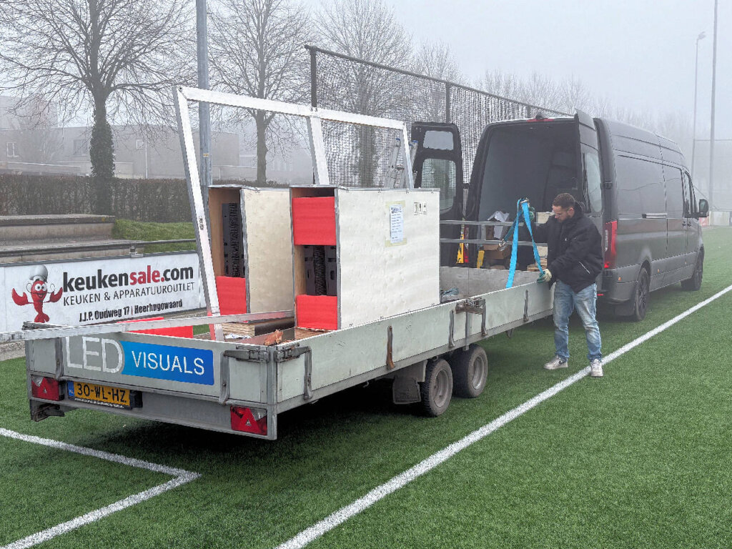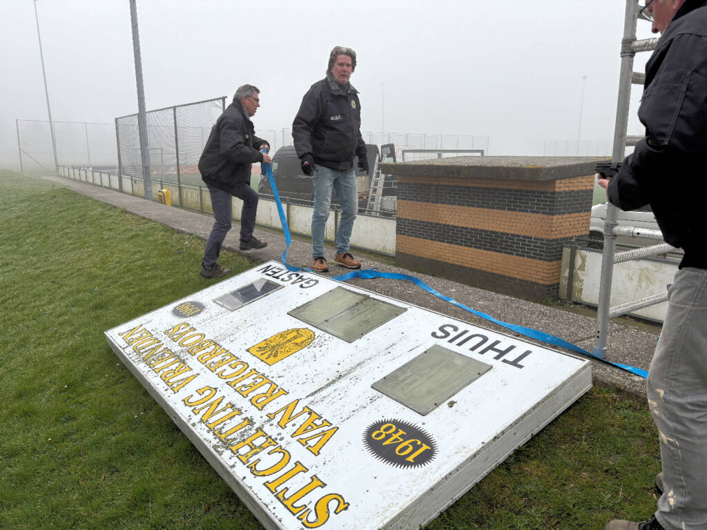 Hieronder de foto’s van de opbouw door LED scores. Ook met behulp van de mannen van de MOT is het oude bord gedemonteerd.