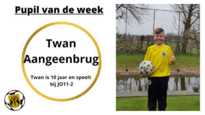Hoi, ik ben Twan Aangeenbrug, ik ben 10 jaar en ik zit nu onder de JO11-2. Ik zit al vanaf mijn 5e jaar op voetbal bij Reiger Boys. En ik woon naast Reiger Boys en ik hoop dat we winnen! Groetjes Twan