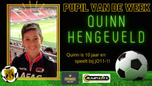 Ik vond het super leuk om Pupil van de Week te zijn. De wedstrijd ging goed en jullie hebben ook nog gewonnen. De muziek was leuk en de aftrap ging goed. Ik heb gewoon een hele leuke dag gehad met jullie! Ik hoop dat ik later ook in zo’n elftal mag spelen?⚽☀ Iedereen heel erg…