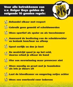 Voel je je onveilig of heb je ervaringen met grensoverschrijdend gedrag binnen onze vereniging? Dan kun je dit melden bij iemand die je vertrouwt zoals jouw ouders, jouw trainer of coach, een coördinator of een verantwoordelijk bestuurslid. Ook heeft Reiger Boys een vertrouwenspersoon. Deze vertrouwenspersoon is onafhankelijk en staat buiten de vereniging. Zij is te…