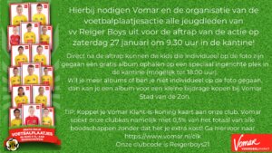 Het was vanmorgen druk in de kantine. Veel jeugdleden waren naar de club gekomen om een voetbalplaatjesboek van de Vomar op te halen. Lennon Kobalt heeft het eerste exemplaar in ontvangst mogen nemen. Vanaf vandaag ontvang je bij elke 15 euro aan boodschappen in een van de vier Vomar vestigingen in Heerhugowaard een set plaatjes.…
