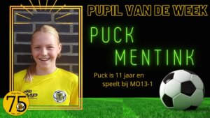 Lees verderIk ben Puck, 11 jaar en ik voetbal in de MO13-1. Ik ben centrale verdediger en de aanvoerder van ons team. Ik vond het heel leuk om pupil van de week te zijn. Ik kreeg een speciale jas met pupil van de week erop en mocht de hele middag bij het damesteam zijn. We begonnen…