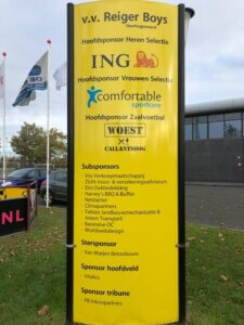 Tijdens de veiling in het kader van het 70 jarig jubileum hebben we twee nieuwe sponsoren aan ons weten te koppelen beide meteen nieuwe sponsoroptie. Als sponsor van ons hoofdveld is voor een aantal jaren Vitalics gekoppeld. Daarnaast PB Inkoopadvies als sponsor van de tribune. Beide nieuwe sponsoren zijn inmiddels, naast stersponsor Van Muijen Betonbouw…