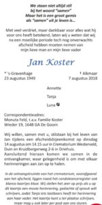 Gisteren ontvingen wij het bericht, dat Jan Koster is overleden. Jan is verzorger geweest van de dames in de jaren negentig. Wij hebben Jan altijd leren kennen als een goed en zachtaardig persoon. Wij wensen de familie heel veel sterkte toe met dit verlies. Bestuur en leden van v.v. Reiger Boys